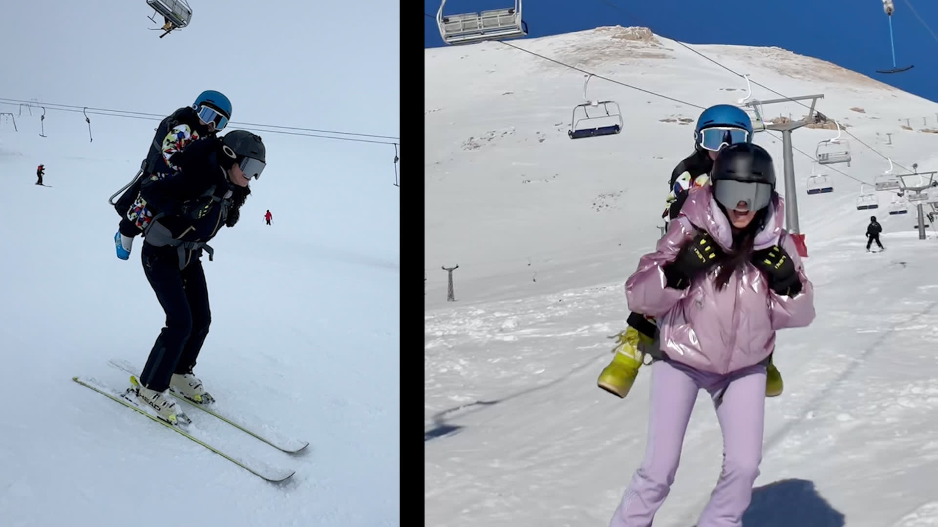 امرأة تتزلج وطفلها على ظهرها بمنطقة الأرز في لبنان..لماذا أثارت ضجة على الإنترنت؟