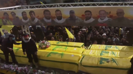 تشييع جثامين مقاتلي حزب الله في جنوب لبنان