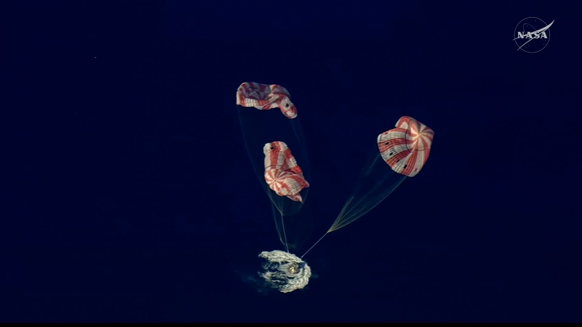 شاهد لحظة هبوط مركبة أوريون وملامستها سطح المحيط الهادئ