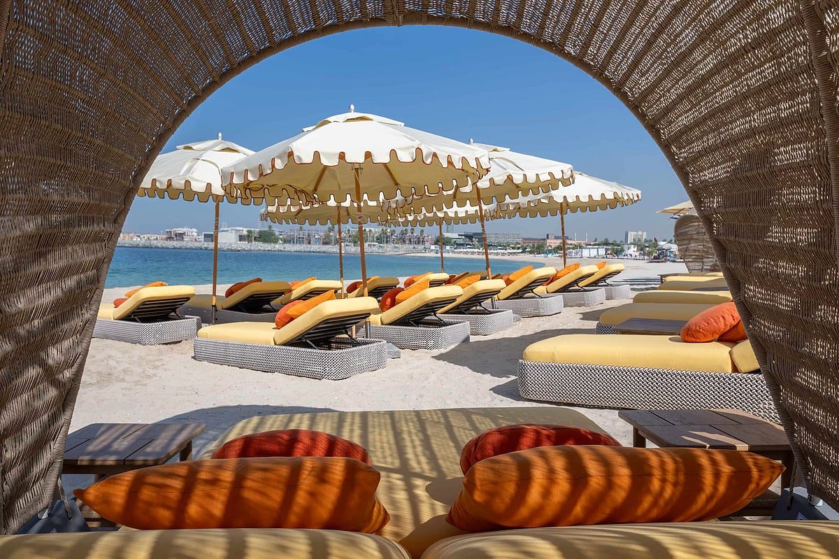 This Bali-inspired sanctuary on West Beach, Palm Jumeirah, is known for its chic, laid-back vibe and stunning views of the Dubai Marina skyline. On weekdays, the club offers free sunbeds with no cover charge, letting you settle into their signature loungers and enjoy one of the most Instagrammable beachfronts in the city. A perfect mid-week escape with nothing to pay.