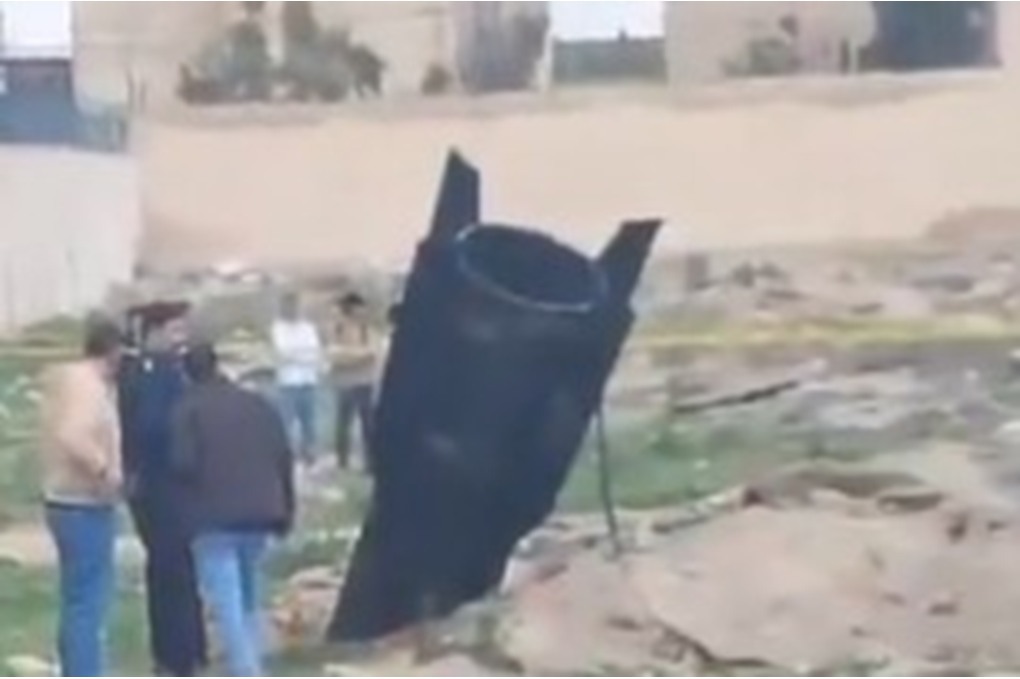 عاجل فيديو .. سقوط جزء من صاروخ بجانب مصنع ألبسة في الضليل