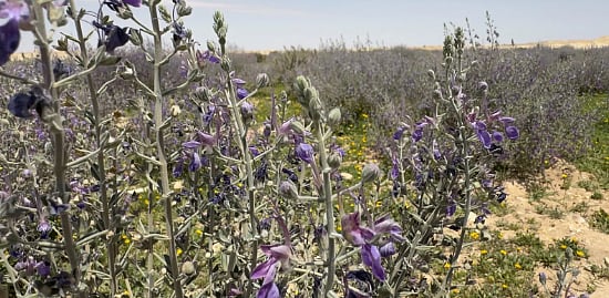 ويُعد "العهين" من النباتات البرية المعروفة في شبه الجزيرة العربية، ويتميّز بأوراقه الدائمة أو شبه الدائمة الخضرة، وأفرعه القائمة التي قد يصل ارتفاعها إلى نحو 70 سنتيمترًا، إضافة إلى أزهاره ذات اللون الأزرق البنفسجي، التي تضفي طابعًا جماليًا على البيئة الصحراوية، وينتمي إلى الفصيلة الشفوية.