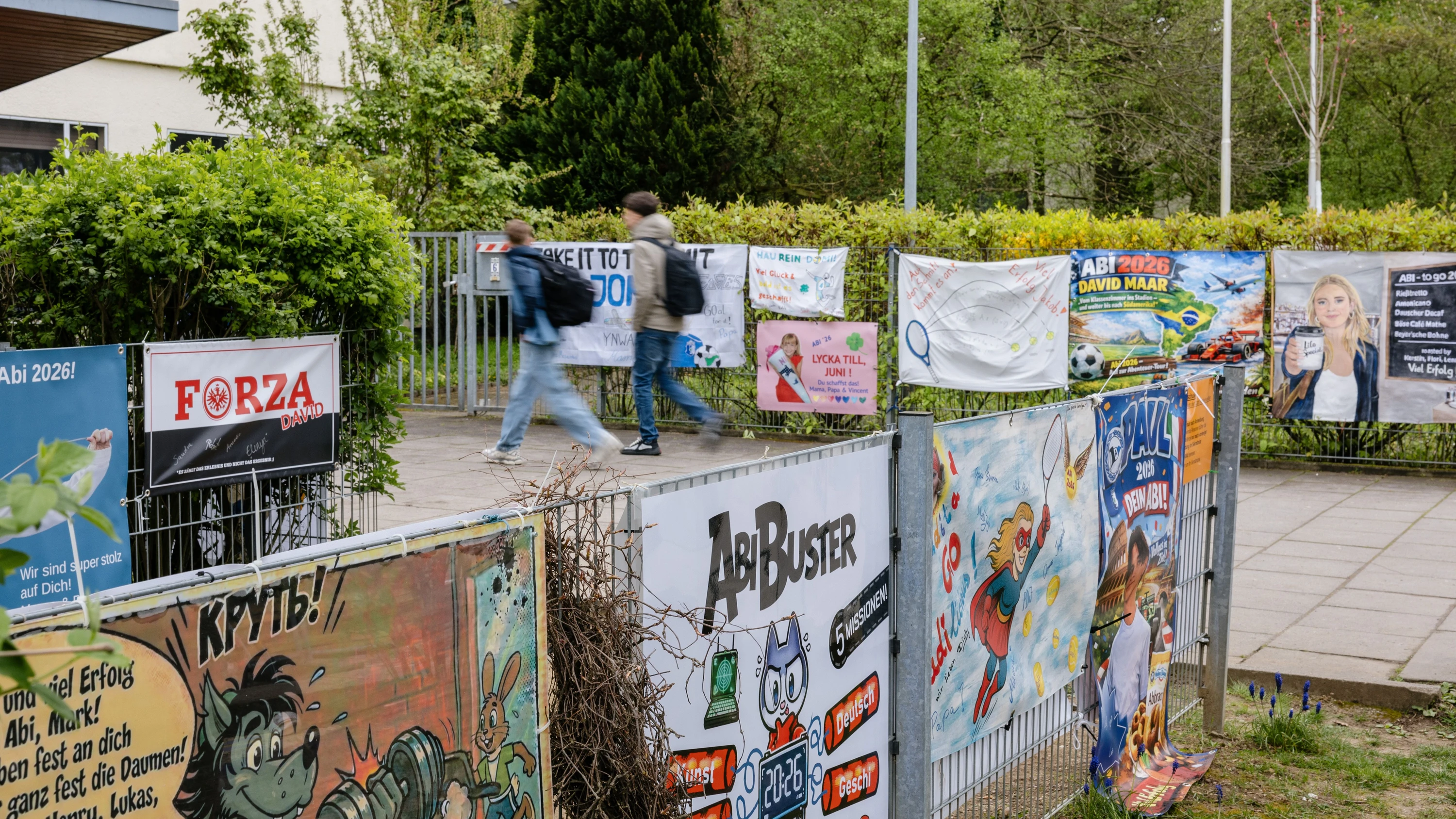 Für 23.700 Schüler in Hessen beginnt das Abitur. Die motivierenden Abi-Plakate vor den Gymnasien in Frankfurt sind längst nicht mehr nur eine Tradition. Sie sind zum Brauch geworden.