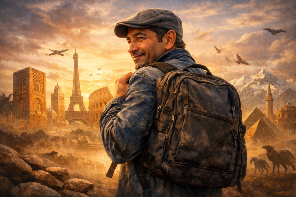 سافرت معي جل مدن المغرب وخارج المغرب: سويسرا، إيطاليا، إسبانيا، فرنسا، سبتة، مصر، الجزائر، تونس، الأردن.. ومن حبي وعشقي لها، كنت أحملها فوق كتفي وأمشي، وهي فرحة بمكانها من جسدي.