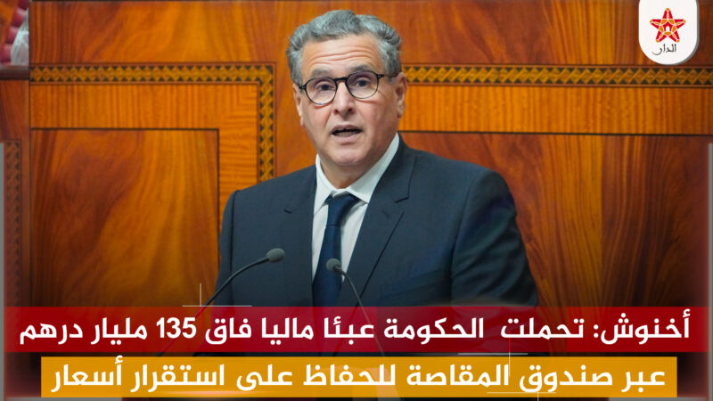 أخنوش خلال تقديم حصيلة الولاية الحكومية : تحملت الحكومة عبئا ماليا فاق 135 مليار درهم عبر صندوق المقاصة للحفاظ على استقرار أسعار المواد الأساسية