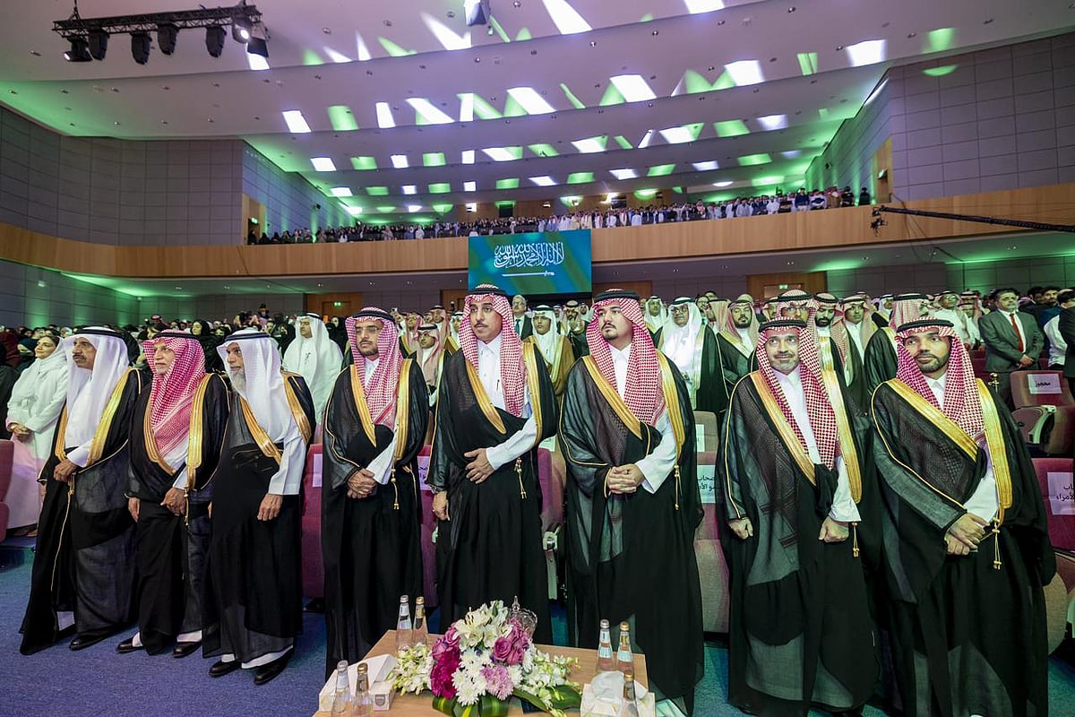 عقب ذلك، أُلقيت كلمة الخريجين، التي عبّروا فيها عن امتنانهم لرعاية سمو الأمير تركي الفيصل لحفل تتويج مسيرتهم العلمية، مؤكدين عزمهم على توظيف ما اكتسبوه من علم ومعرفة في خدمة الوطن. ثم جرى إعلان أسماء الخريجين، وأدوا القسم، والتقطوا الصور التذكارية بهذه المناسبة.