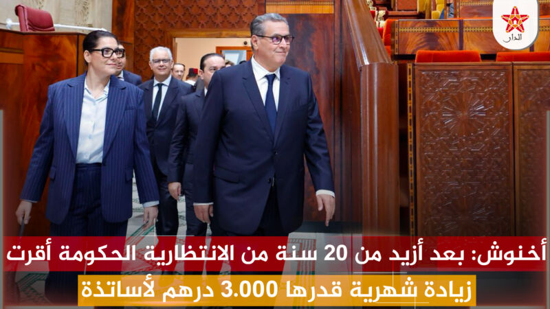 الحصيلة الحكومية.. أخنوش: بعد أزيد من 20 سنة من الانتظارية الحكومة أقرت زيادة شهرية قدرها 3.000 درهم لأساتذة التعليم العالي