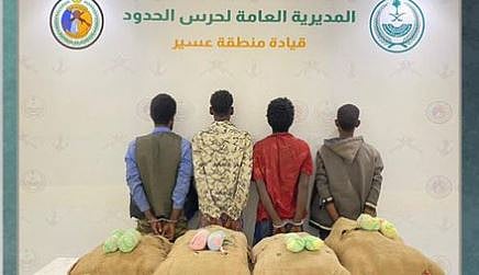 كما ألقت "الدوريات" في قطاع الربوعة بمنطقة عسير القبض على (4) مخالفين لنظام أمن الحدود من الجنسية الإثيوبية، لتهريبهم (80) كيلوجراما من نبات القات المخدر. وجرى استكمال الإجراءات النظامية الأولية بحقهم، وتسليمهم والمضبوطات لجهة الاختصاص.