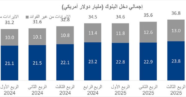 القطاع المصرفي الخليجي يسجل إيرادات قياسية بـ 37.4 مليار دولار بنمو 1.7 % بالربع الرابع 2025