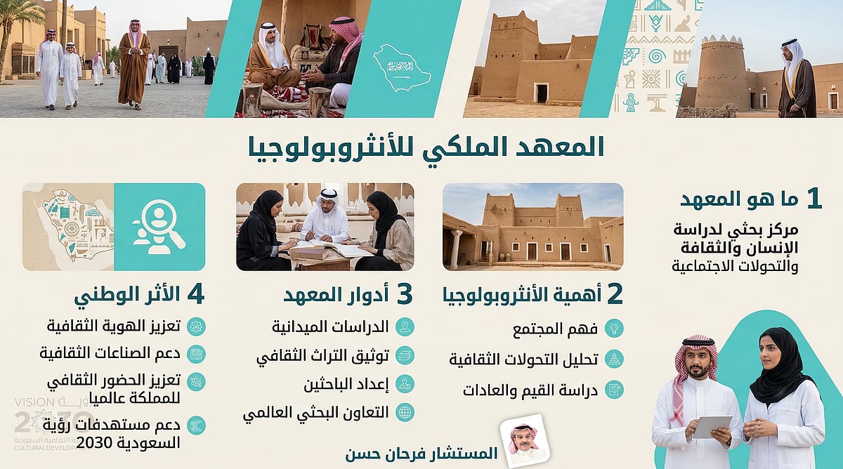 إن تأسيس المعهد الملكي للأنثروبولوجيا يمثل خطوة معرفية مهمة في مسار التطور الثقافي للمملكة ويعكس رؤية استراتيجية تستثمر في فهم الإنسان والمجتمع بوصفهما أساسا لأي تنمية مستدامة. ومع استمرار التحولات الوطنية الكبرى تواصل المملكة تعزيز دور الثقافة والمعرفة كجزء أصيل من مشروعها الحضاري في ظل قيادة خادم الحرمين الشريفين وسمو ولي العهد وتحقيق مستهدفات رؤية السعودية 2030.