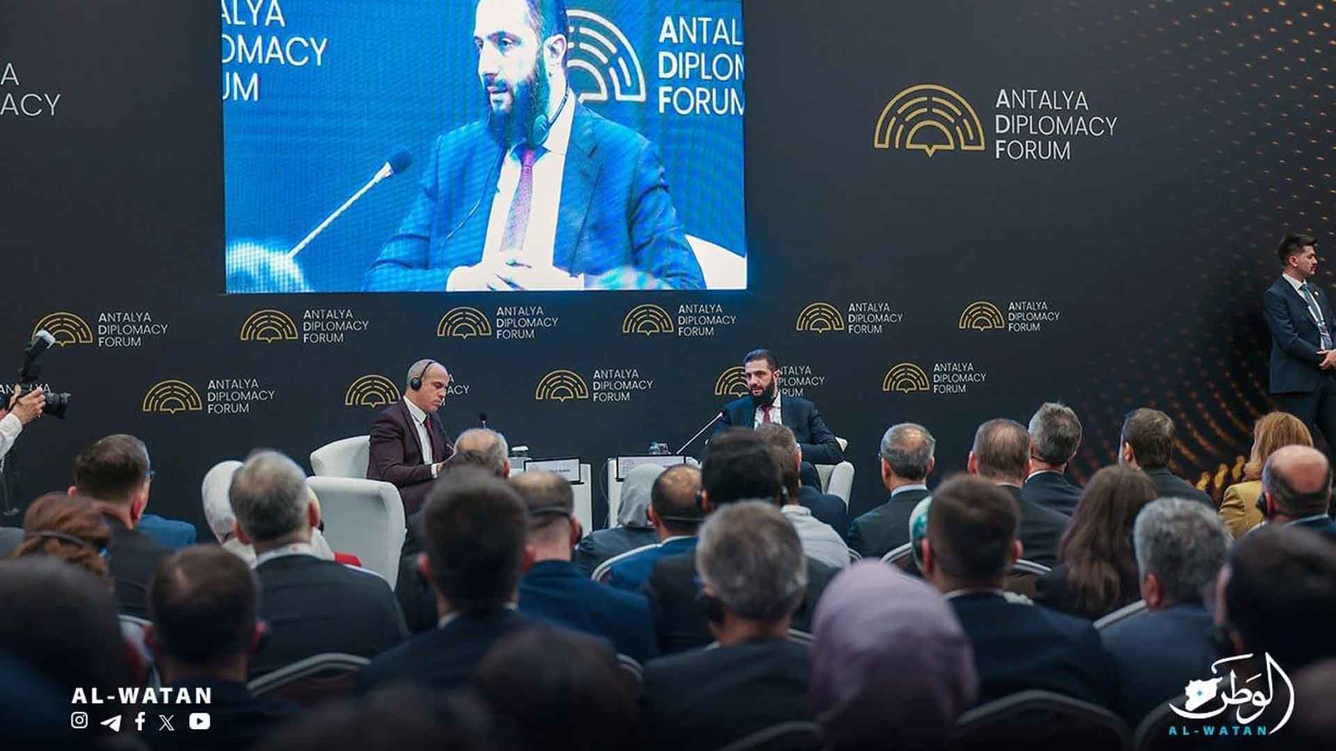 وأوضح الرئيس الشرع، خلال جلسة حوارية في منتدى أنطاليا بدورته الخامسة المنعقد في تركيا تحت شعار “التعامل مع حالات عدم اليقين عند رسم المستقبل”، أن الصراع في المنطقة ليس وليد اللحظة بل جذوره عميقة في التاريخ، وسوريا تبتعد عن خيارات الاصطفاف بجانب دولة ضد أخرى، وتسعى لأن تكون جسر وصل بين الدول الكبرى، ولها اليوم علاقات مثالية مع الولايات المتحدة ومع روسيا والصين وبريطانيا وفرنسا وألمانيا ودول المنطقة.