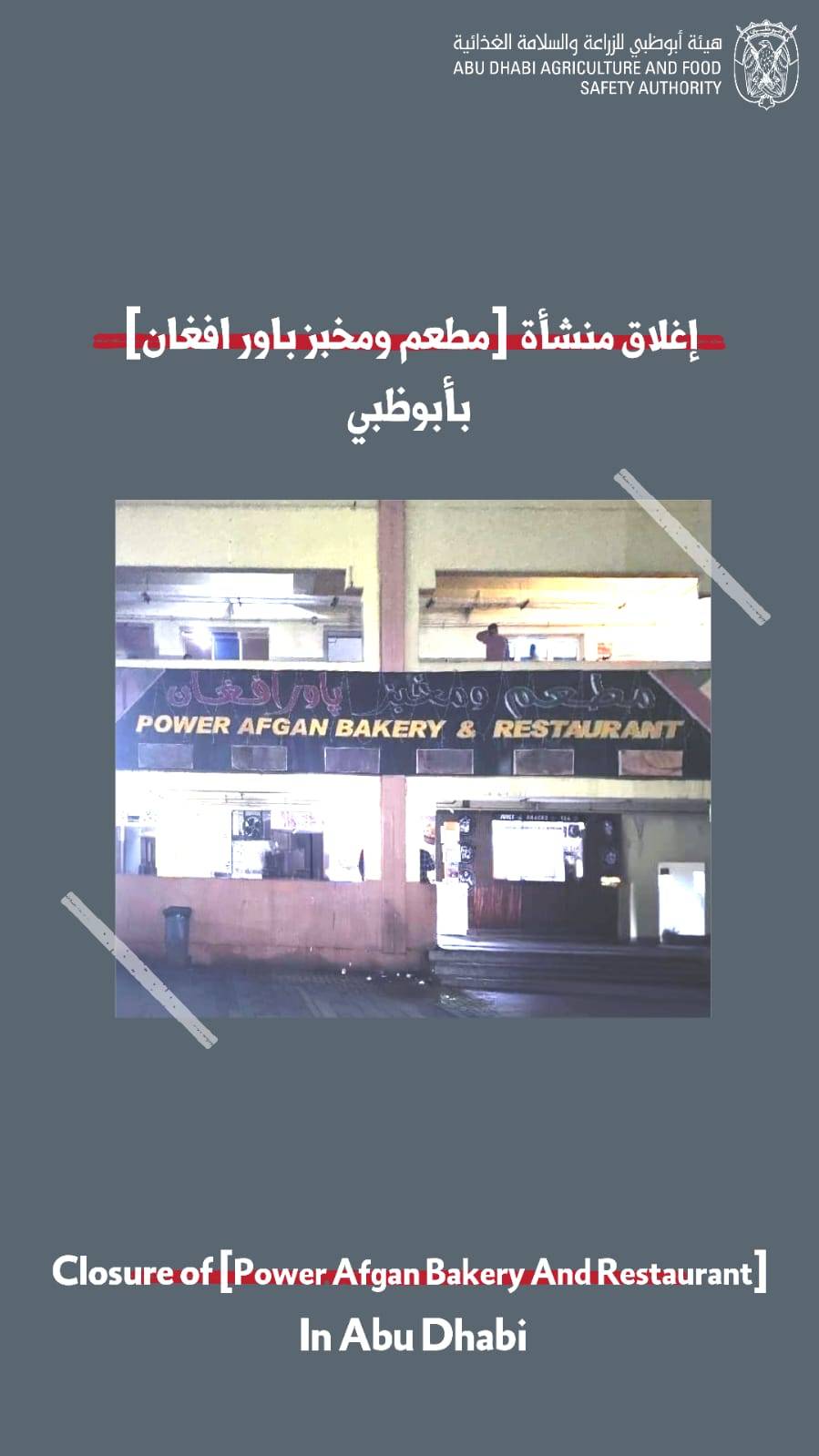 أصدرت هيئة أبوظبي للزراعة والسلامة الغذائية، قراراً بالإغلاق الإداري بحق منشأة «مطعم ومخبز باور