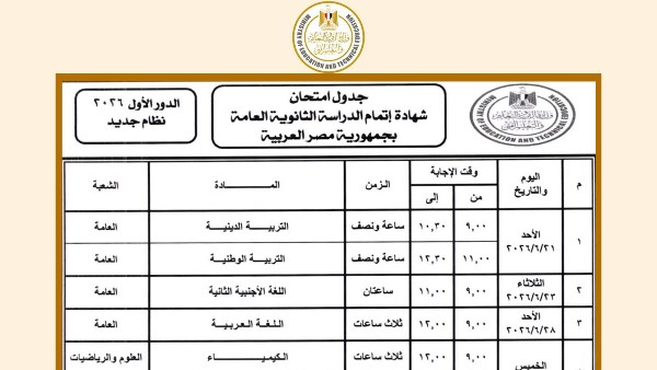 ننشر جدول امتحانات الثانوية العامة 2026 لطلاب علمي وأدبي