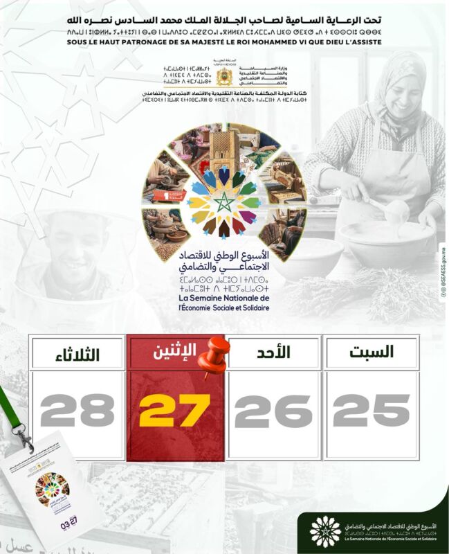 The post انطلاق فعاليات الأسبوع الوطني الأول للاقتصاد الاجتماعي والتضامني ببرنامج غني ومتنوع ومشاركة واسعة لمختلف الفاعلين في القطاع first appeared on Aldar.ma.