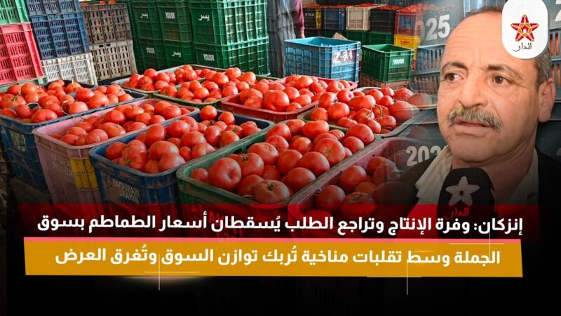إنزكان: وفرة الإنتاج وتراجع الطلب يسقطان أسعار الطماطم بسوق الجملة وسط تقلبات مناخية