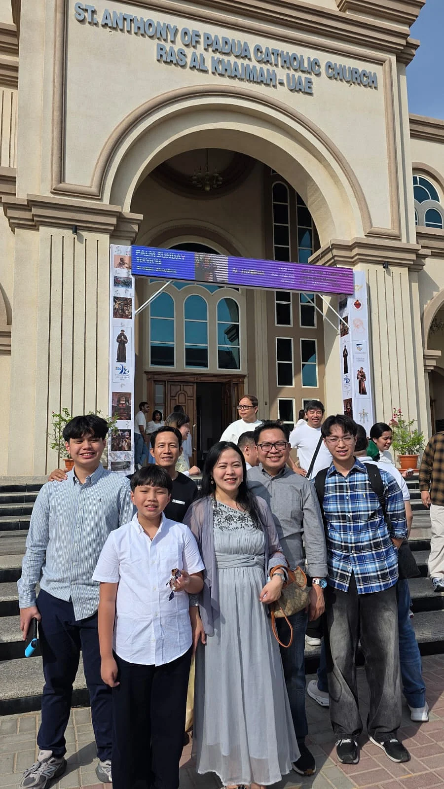 Rem Sagarino with his friends outside the church in Ras Al Khaimah