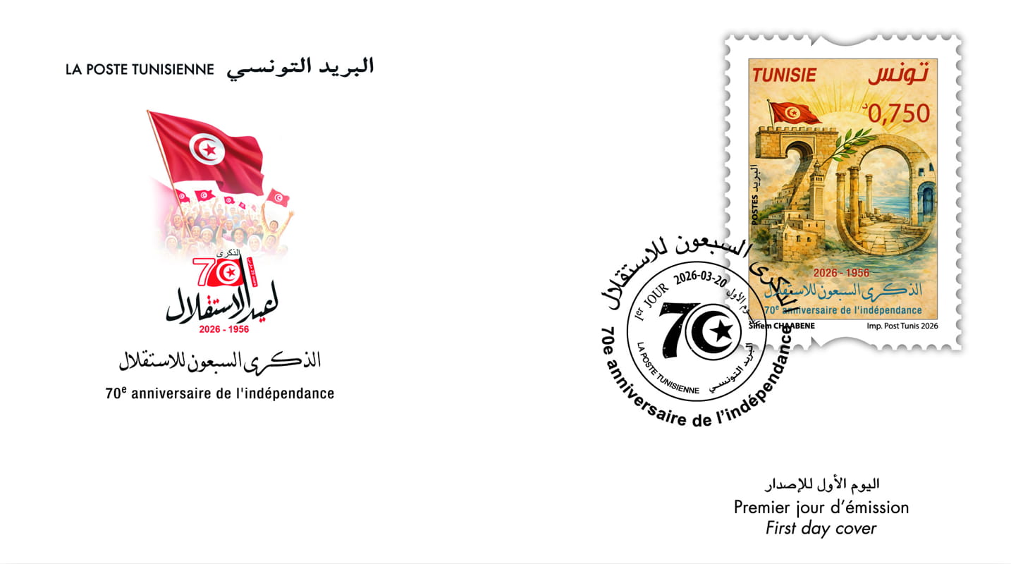 وسيعرض هذا الطـــابع البريدي والمنتوجات المتصلة به للبيع، وفق بلاغ صادر عن البريد التونسي، الإربعاء، إبتداء من يـــــوم الخميس 23 أفريل 2026