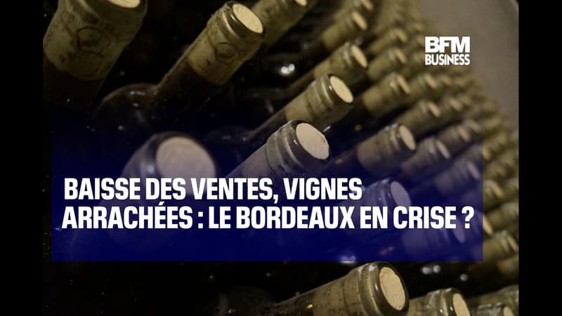BFM-EconomieBaisse des ventes, vignes arrachées : le Bordeaux en crise ?Porte-étendard du vin français, le Bordeaux traverse une période compliquée. La consommation baisse, bousculée par le sans alcool, et les exploitants sont contraints d'arracher des vignes.Aujourd'hui à 11h59 | Durée : 1:37PartagerX