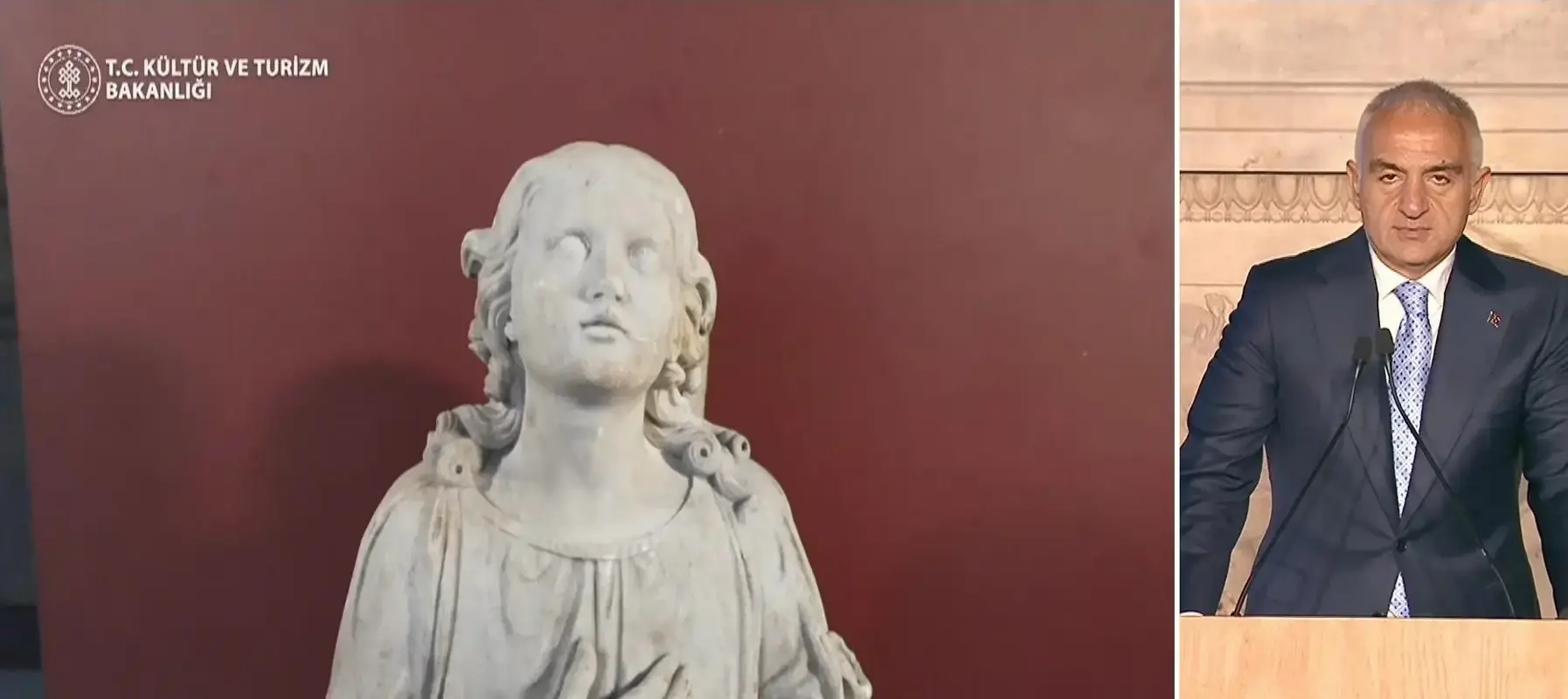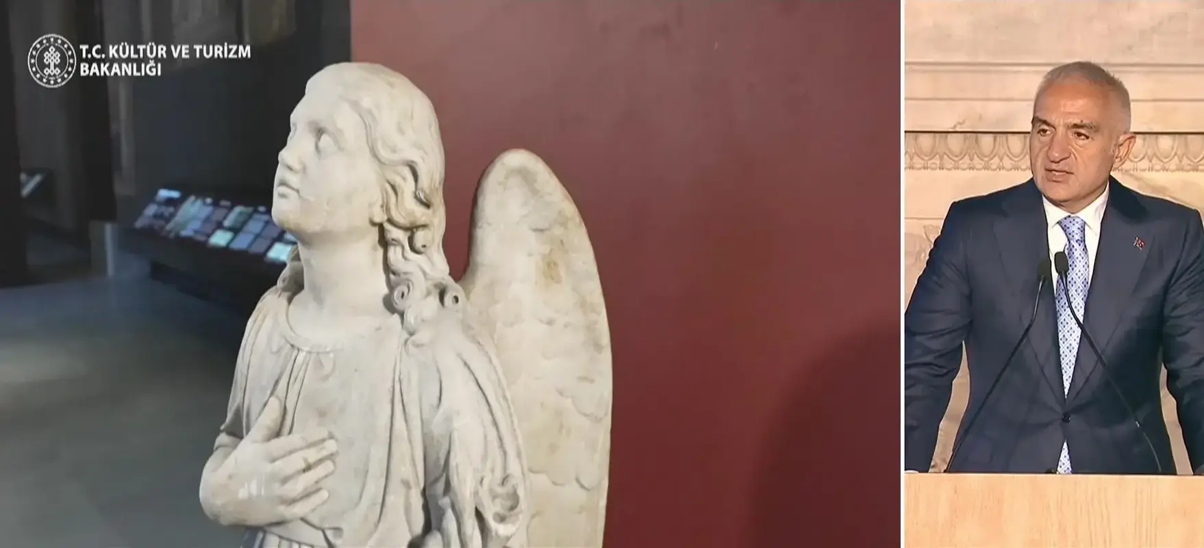 Kültür ve Turizm Bakanı Mehmet Nuri Ersoy, konuşmasının devamında Ortodoks cemaatine ait bir melek heykelinin 2004 yılında Denizli’de gerçekleştirilen bir operasyonla ele geçirildiğini, yapılan incelemeler sonucunda heykelin Heybeliada’daki Aya Yorgi Manastırı’ndan çalındığının tespit edildiğini aktardı. Eserin, hukuki süreçlerin tamamlanmasının ardından ve Fener Rum Patrikhanesi ile yapılan yapıcı diyalog sayesinde ait olduğu yere teslim edildiğini söyleyen Ersoy, "Bu teslim bir eserin yerine dönmesi, kültürel bir hafızanın tamamlanması olduğu kadar hukukun, saygının ve ortak değerlerimizin de somut bir tezahürüdür." ifadelerini kullandı.