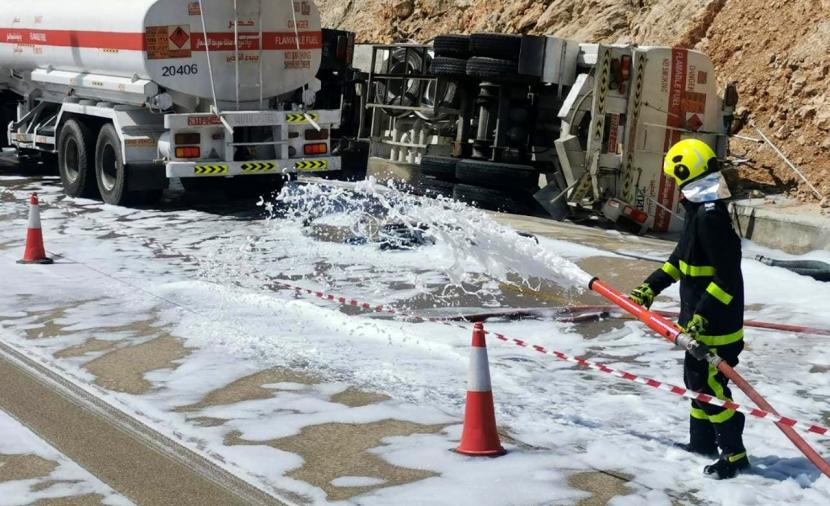 بالفيديو.. وفاة سائق صهريج مواد خطرة في حادث تدهور بالبريمي