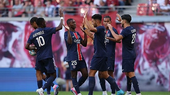 أحرز هدف فريق باريس سان جيرمان الأول، ديزيري دوي في الدقيقة 11 من زمن المباراة، بعد أن أطلق قذيفة من حافة المنطقة، ارتطمت وغيرت مسارها لتسكن شباك الريدز.