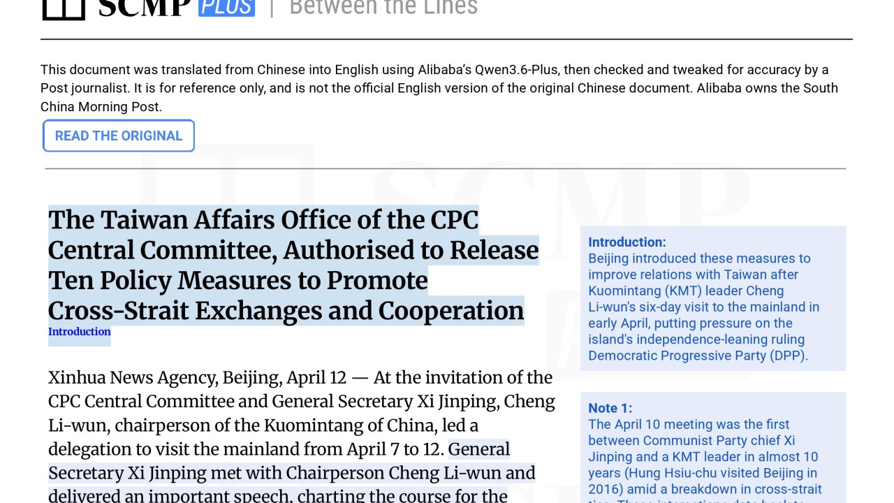 This document was translated from Chinese into English using Alibaba’s Qwen3.6-Plus, then checked and tweaked for accuracy by a South China Morning Post journalist. It is for reference only, and is not the official English version of the original Chinese document. Alibaba owns the South China Morning Post.