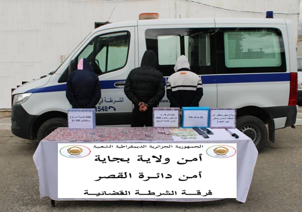 تمكنت عناصر الشرطة التابعة لأمن دائرة القصر بأمن ولاية بجاية من الإطاحة بجماعة أشرار تتكون من 3 أشخاص. مختصة في بيع وترويج المؤثرات العقلية بمدينة القصر ببجاية.