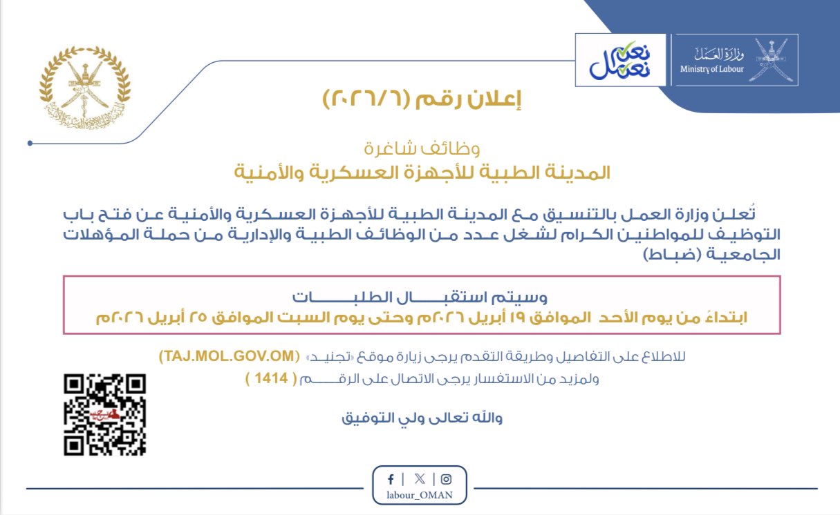 فتح باب التوظيف في عدد من الوظائف الطبية والإدارية