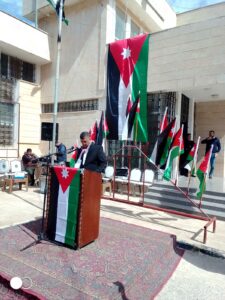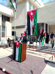 وأكد المتصرف العبادي في كلمته أن الاحتفال بيوم العلم الأردني يجسد معاني الفخر والانتماء، باعتبار العلم رمز السيادة والوحدة الوطنية، ورايةً خفاقة ترفرف بعزة في سماء الوطن في ظل القيادة الهاشمية الحكيمة بقيادة الملك عبد الله الثاني.