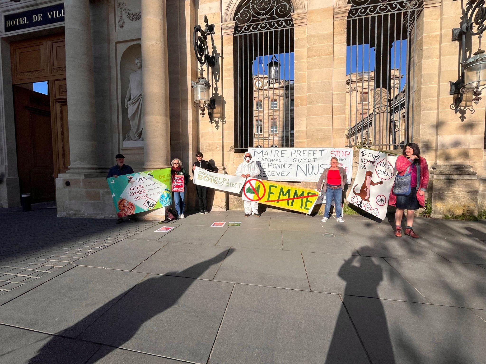 Bordeaux : des opposants au projet de méga-usine EMME interpellent Thomas Cazenave devant l’hôtel de ville Par Clément Arion, Le Figaro Bordeaux Le 14 avril 2026 à 14h07 Suivre Sujets Raffinerie usine Environnement Lire dans l’app Copier le lien Lien copié Mail Facebook X Linkedin Messenger WhatsApp Les manifestants présents ce matin, devant l’hôtel de ville de Bordeaux. Collection personnelle / FB À Bordeaux, des opposants au projet de raffinerie EMME ont manifesté mardi matin devant la mairie, à l’approche d’une date clé sur l’implantation de cette usine controversée. Passer la publicité Passer la publicité Publicité Surprise mardi matin devant le Palais Rohan. Dès 9h, une dizaine d’opposants au projet de raffinerie de nickel et de cobalts EMME se sont installés devant l’entrée de l’hôtel de ville de Bordeaux, avec plusieurs pancartes. «Maire Cazenave, préfet Guyot, répondez, recevez-nous», pouvait-on lire sur l’une d’entre elles. L’objectif de cette action est de faire pression sur le nouveau maire de Bordeaux, Thomas Cazenave, en lui demandant de se positionner face à ce projet très contesté. L’entreprise EMME prévoit d’installer une méga-usine au cœur d’un parc de 6000 hectares, en bordure de Garonne, entre Parempuyre et Blanquefort, près de Bordeaux, avec pour objectif de convertir du nickel et du cobalt destinés à la fabrication de batteries de voitures électriques. Un chantier estimé à plus de 500 millions d’euros, qui avait été mis en avant par Emmanuel Macron lors du sommet Choose France, en mai 2024. Promis à la création de 500 emplois dont 200 directs, le projet entend devenir «un site unique en France» pour la mobilité électrique. Cependant, le site sera classé Seveso seuil haut, le niveau maximal de dangerosité, en raison de la toxicité des produits manipulés au contact de l’eau. À Parempuyre comme dans les communes voisines, habitants et associations locales alertent depuis des mois sur les risques environnementaux, en particulier celui lié aux inonda...