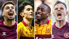 Braga, Just, Maswanhise & Shankland up for awardImage source, SNSImage caption, Claudio Braga, Elijah Just, Tawanda Maswanhise and Lawrence Shankland are up for an end of season awardPublished1 minute agoHearts forwards Claudio Braga and Lawrence Shankland and Motherwell attackers Elijah Just and Tawanda Maswanhise are the four candidates for PFA Scotland's player of the year award.Portuguese striker Braga, 26, and Scotland forward Shankland, 30, have scored 34 goals between them this season for Scottish Premiership leaders Hearts.Zimbabwe international Maswanhise, 23, is the division's top scorer on 17 and he has 23 in all competitions. New Zealand winger Just, 25 has netted seven times this term and provided seven assists.Fellow professionals will vote for the winner, with the awards ceremony taking place on 3 May.Sunday's Scottish Premiership highlights on Sportscene26/04/26Watch on iPlayerAll four nominees enjoyed Sunday wins, with Hearts' 2-1 victory at Hibernian taking them three points clear at the top with four games to play and Motherwell winning 3-2 at Rangers to consolidate fourth place.Celtic winger Daizen Maeda won last year's player of the year award.Motherwell rediscover mojo to have say in title racePublished1 hour agoWill doubters believe in Hearts' title chances now?Published18 hours agoMotherwell & Hearts dominate PFA Scotland Team of the YearPublished17 AprilWinners St Johnstone have two players, Jamie Gullan and Josh McPake, nominated for the Scottish Championship player of the year along with Dunfermline Athletic's Andrew Tod and Partick Thistle's Ben Stanway.For League 1 player of the year, leaders Inverness Caledonian Thistle's Alfie Stewart, Peterhead's Kieran Shanks, Hamilton Academical's Oliver Shaw and Stenhousemuir's Ross Taylor are on the ballot.And Wullie Gibson of Annan Athletic, Spartans' Mark Stowe, Lewis Reid of Stranraer and East Kilbride's John Robertso...