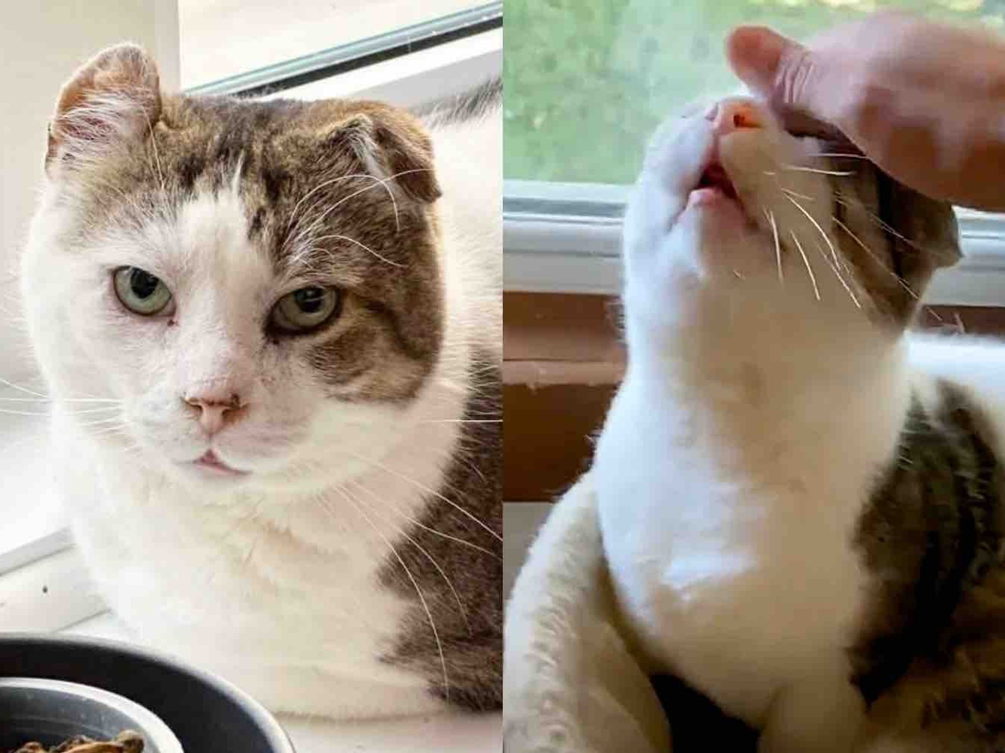 After spending his entire life fighting to survive on the streets, the cat was finally brought indoors.