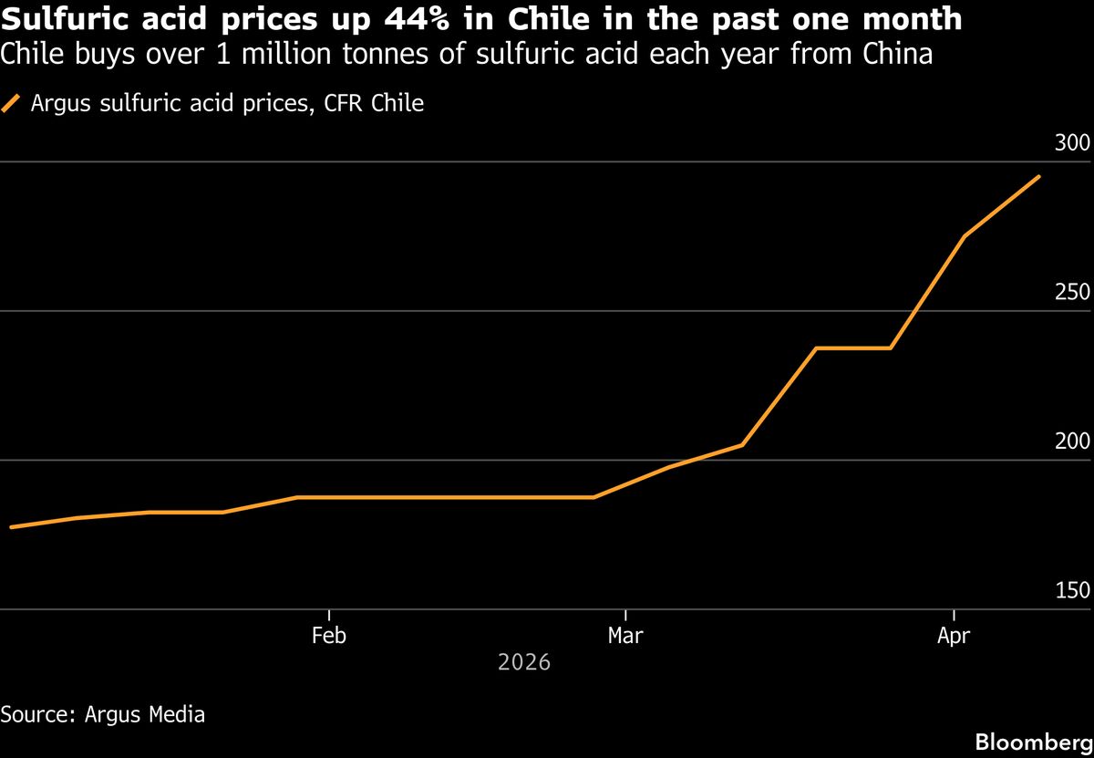 China has indicated it will halt exports of sulfuric acid from May, hitting metals and fertilizer industries already strained by raw material bottlenecks resulting from the Iran war.