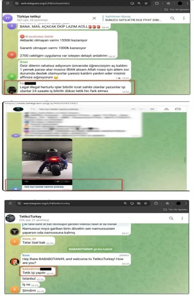 Güvenlik güçleri, şüphelilerin sosyal medyayı bir "operasyon sahası" olarak kullandıklarını, suç örgütlerine yeni eleman kazandırma gayretinde olduklarını belirledi. İncelemelerde, kapalı iletişim platformlarında kurulan gruplar vasıtasıyla "tetikçi" temin etmeye veya "tetikçilik işi yapmaya yönelik ilan ve paylaşımlarda bulunulduğu" ortaya çıkarıldı.