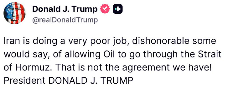Iran doing 'poor job' of allowing oil through Hormuz Strait: Trump