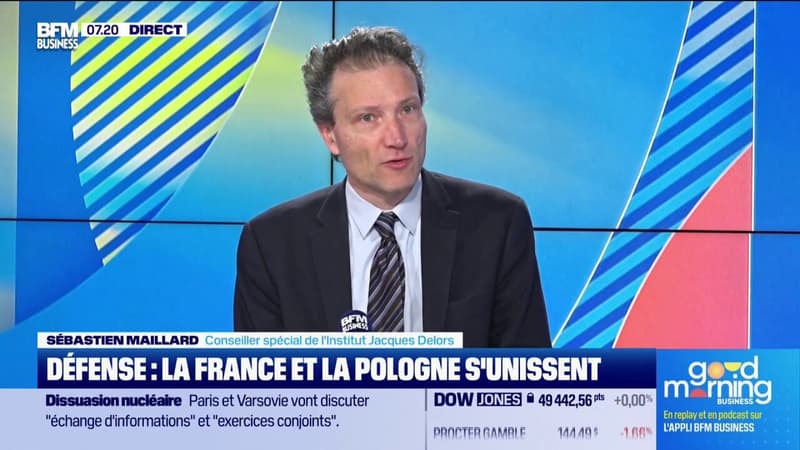BFM-Economie-Émissions-Good Morning BusinessDéfense : la France et la Pologne s'unissent"Ce type d'accord, ça fait partie de notre souveraineté européenne à bâtir, à construire. C'est un investissement français dans un pays clé d'avenir de l'UE."Aujourd'hui à 07h50 | Durée : 3:03PartagerX
