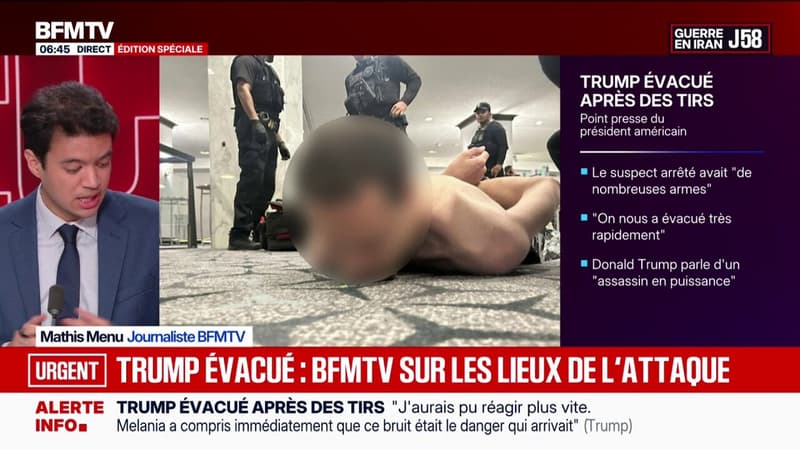 BFM-InternationalDonald Trump évacué: les derniers éléments sur le profil du suspectLe président américain Donald Trump a été évacué samedi soir du dîner des correspondants de la Maison Blanche où des tirs ont été entendus et un tireur présumé arrêté.Aujourd'hui à 06h53 | Durée : 1:00PartagerX