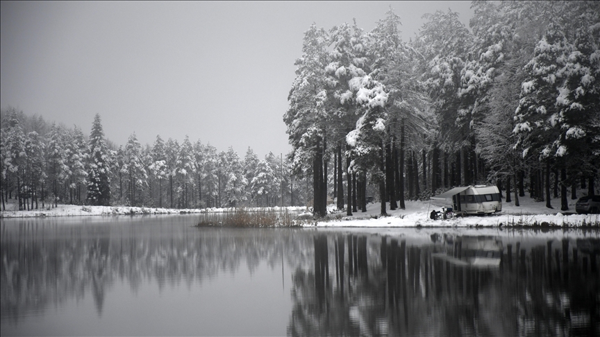 Düzce'nin Kaynaşlı ilçesinde, doğal güzellikleriyle bilinen Topuk Yaylası kar yağışının ardından beyaza büründü.