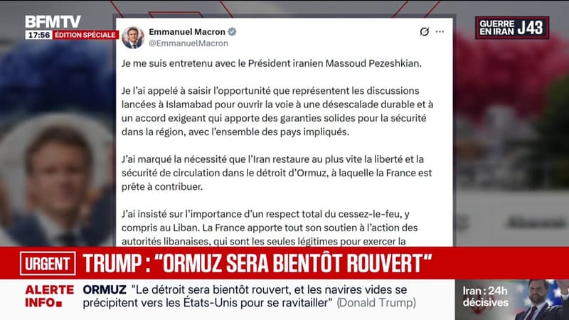 Emmanuel Macron appelle le président iranien à "saisir l'opportunité" des discussions au Pakistan pour une "désescalade durable"