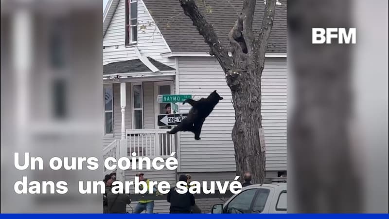 États-Unis: un ours coincé en haut d'un arbre sauvé grâce à un filet antichute