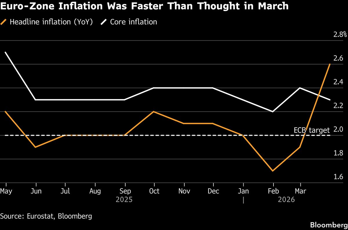 Euro-Zone Inflation Was Quicker Than Thought in March at 2.6%