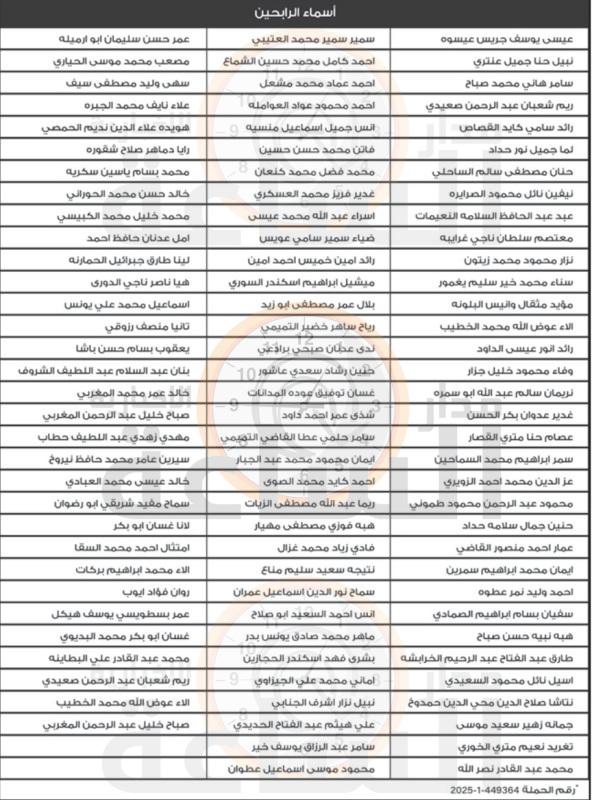 فاين تعلن الأردنيين الرابحين شاشة 50 بوصة (أسماء) مدار الساعة ـ نشر في 2026/04/19 الساعة 01:03 حجم الخط مدار الساعة - أعلنت شركة فاين لصناعة الورق الصحي اليوم الأحد عن أسماء الرابحين بشاشة 50 بوصة ضمن حملة "اربح شاشة مع خيرات الجنة"، الموافق عليها من قبل وزارة الصناعة والتجارة والتموين تحت رقم الطلب (449364-1-2025)، كما هو موضح أدناه: مدار الساعة ـ نشر في 2026/04/19 الساعة 01:03 مدار الساعة مناسبات أردنيةوزارة الصناعة والتجارةوزارة الصناعة