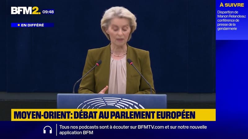 Ursula von der Leyen, présidente de la Commission européenne, a tenu un discours lors du débat sur les impacts de la guerre au Moyen-Orient au Parlement européen à Strasbourg, ce mercredi 29 avril.