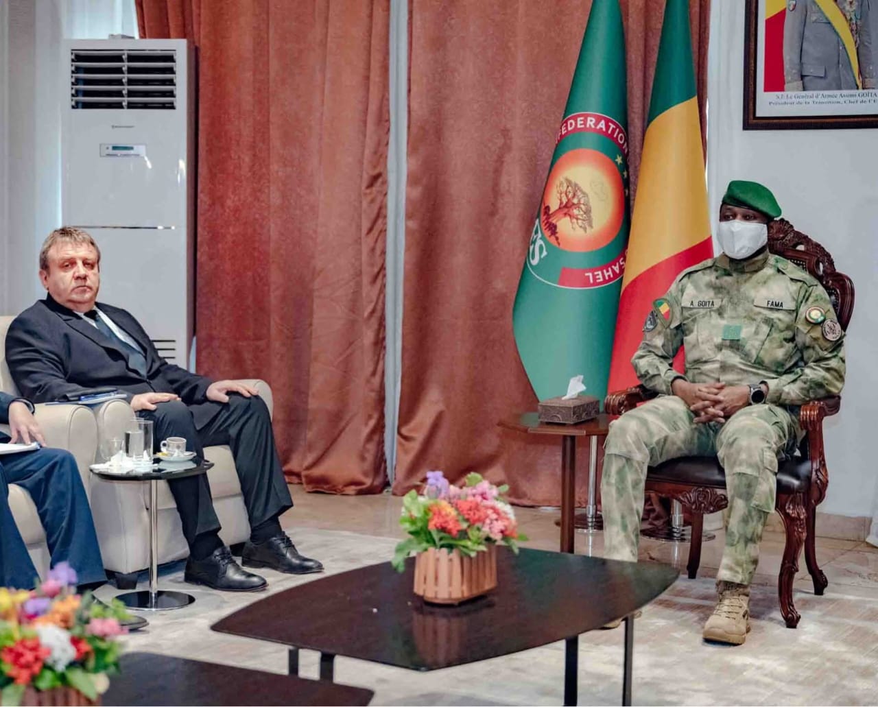 استقبل رئيس المجلس العسكري الحاكم في مالي عاصيمي غويتا، اليوم الثلاثاء، سفير روسيا لدى مالي، السيد إيغور غروميكو.