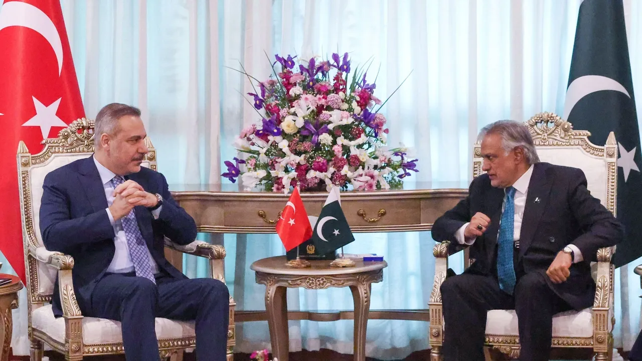 وزير الخارجية التركي هاكان فيدان يلتقي نظيره الباكستاني محمد إسحاق دار، في إسلام أباد. / AA