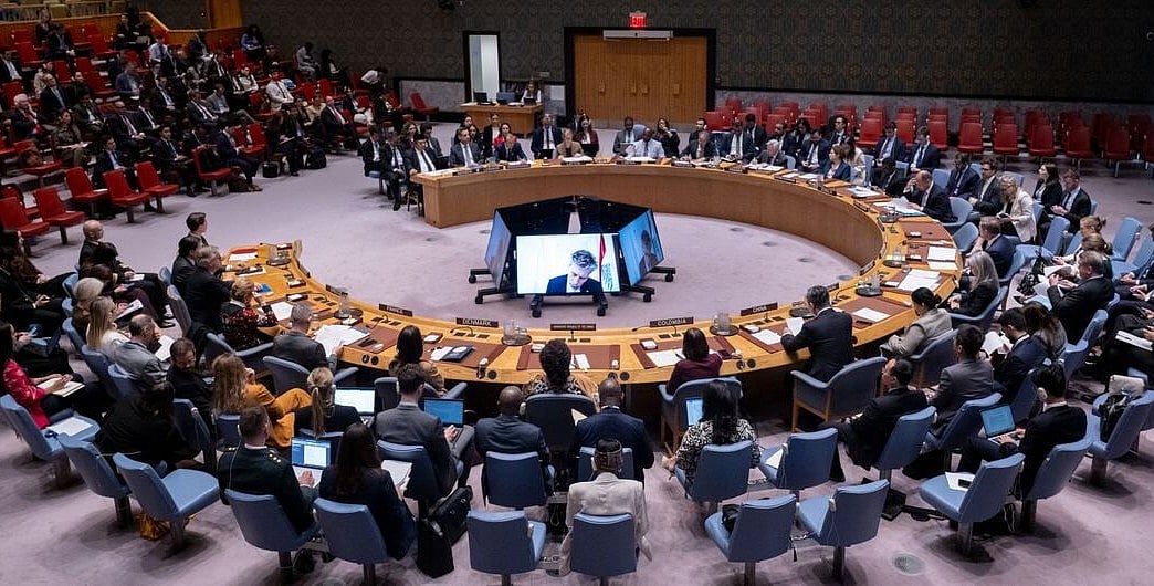 وأضاف الزياني، خلال كلمته أمام مجلس الأمن اليوم الثلاثاء، إنه "إذا سمح مجلس الأمن اليوم بإبقاء مضيق هرمز مغلقا فسيتكرر الأمر مع مضائق أخرى لاحقا".