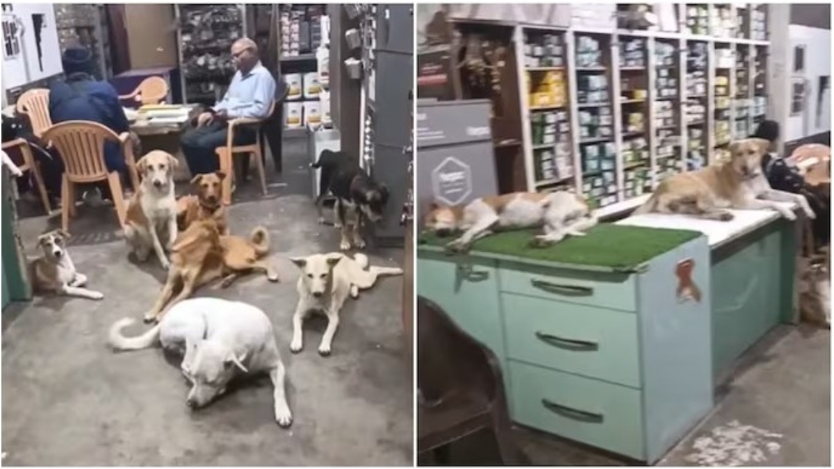 गर्मी से बचने के लिए कुत्तों को दुकान में दी पनाह, बुजुर्ग दुकानदार की पहल वायरल