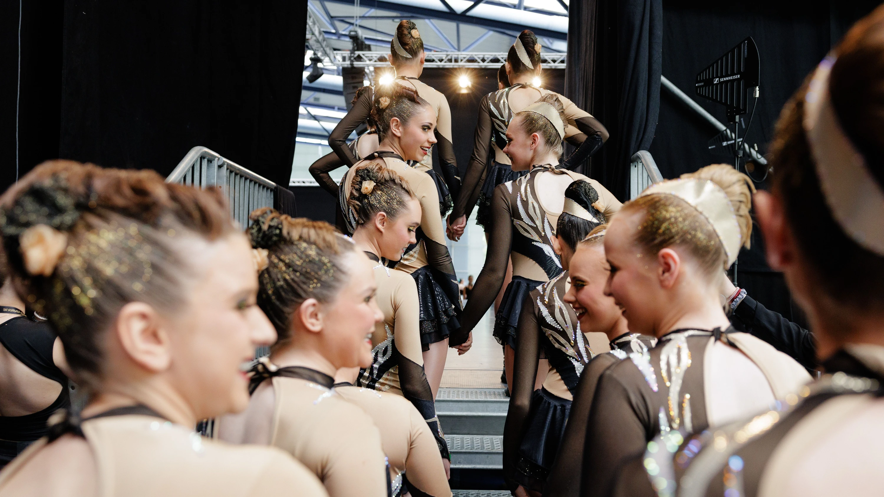 Gardetanz : Leistungssport im GlitzerkostümVon Rike Ohlerich28.04.2026, 14:54Lesezeit: 4 Min.Bildbeschreibung ausklappenDie Aufregung steigt: die Little Tigers des Tanzsportvereins Schwarz-Gold Frankfurt unmittelbar vor ihrem Auftritt im MarschtanzEmil EichingerKörperspannung und Zusammenhalt: In Frankfurt geht es bei der Deutschen Meisterschaft im Schau- und Gardetanz um mehr als ausgefeilte Choreographien.Zusammenfassung Anhören Merken TeilenVerschenkenDrucken Zur App Die Aufregung in der Halle ist deutlich spürbar. Überall laufen Jugendliche in auffälligen, glitzernden Kostümen herum. An diesem Sonntag finden im Sport- und Freizeitzentrum Kalbach die Deutschen Meisterschaften im Schau- und Gardetanz statt. Vor der Halle sammeln sich immer mehr Zuschauer: Familien und Freunde der Tänzer, ehemalige Trainerinnen anderer Vereine sind angereist, um ihre früheren Schützlinge auf der Bühne zu sehen. An Unterstützung mangelt es nicht.Für die Tänzerinnen – Tänzer sind die große Ausnahme – sind die deutschen Meisterschaften, neben den europäischen Meisterschaften, einer der wichtigsten Termine der Saison. Die Zeit im Leistungssport muss effizient genutzt werden, denn im Schau- und Gardetanz endet die Karriere vieler Leistungssportlerinnen schon mit Mitte zwanzig. Die Verletzungsgefahr sei hoch, sagt Lea Toprak, Jugendsprecherin des TSC Schwarz-Gold Frankfurt. Die Tänzerinnen folgten einem strengen Trainingsplan. Zweimal in der Woche werde in der Gruppe für drei bis vier Stunden trainiert, dazu kämen noch zwei- bis dreimal Kraft- und Flexibilitätstraining.Die kleinen Rituale vor dem AuftrittLea, die in der Hauptklasse des Vereins tanzt, erzählt, dass das Training schon vier Wochen nach der Europameisterschaft wieder beginne und die neue Choreographie gestellt werde. „Stellen“ bedeutet im Gardetanz, einzelne Schritte zu planen und sie zu einem rhythmischen Ablauf, einer Choreographie, zusammenzufügen. Eine ganze Saison lang wird dieses Arrangement bis zur Perfektion trainier...