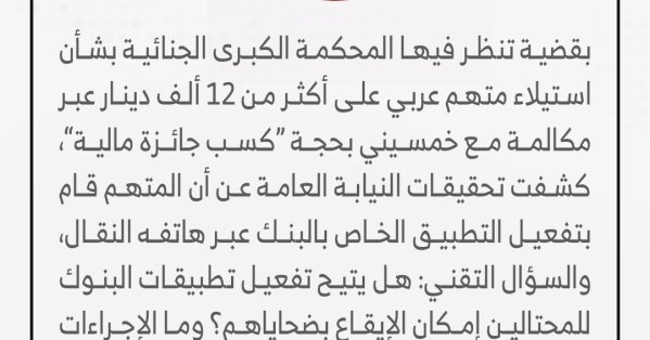 بقضية تنظر فيها المحكمة الكبرى الجنائية بشأن استيلاء متهم عربي على أكثر من 12 ألف دينار عبر مكالمة مع خمسيني بحجة “كسب جائزة مالية”، كشفت تحقيقات النيابة العامة عن أن المتهم قام بتفعيل التطبيق الخاص بالبنك عبر هاتفه النقال، والسؤال التقني: هل يتيح تفعيل تطبيقات البنوك للمحتالين إمكان الإيقاع بضحاياهم؟ وما الإجراءات المتبعة لحماية البيانات؟