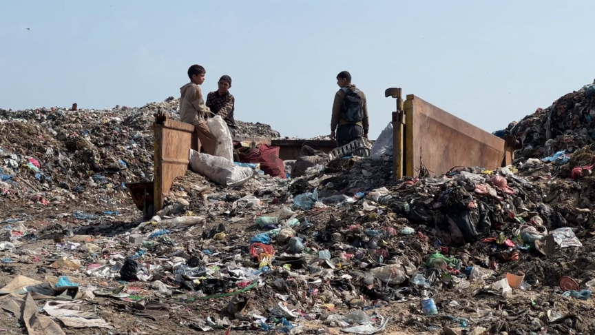 Gazzeli çocuklar, kaldıkları çadırların yakınlarındaki çöp yığınları arasında büyüyor